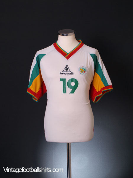 Details - Home shirt as worn during the 2002 World Cup when Senegal made it to the knockout stage after finishing as runners up in their group behind Denmark before being knocked out in the quarter finals after losing 1-0 after extra time against Turkey