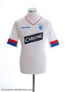 Details - Away shirt as worn when Rangers failed to defend their Scottish Premier League title, finishing 17 points behind champions Celtic, and were knocked out in the semi finals of the Scottish League Cup, losing 4-3 on penalties against Hibernian after the game finished 1-1 after extra time. Also worn when Rangers were knocked out in the group stages of the Champions League, finishing bottom of their group behind Manchester United, Stuttgart and Panathinaikos.