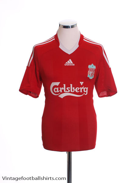 Details - The last shirt to be sponsored by Carlsberg, worn in the 2008-09 season when Liverpool pushed Manchester United all the way to the league title, before finishing a disappointing 7th the next season but did make it to a Europa League semi finals, losing on away goals against Atletico Madrid.