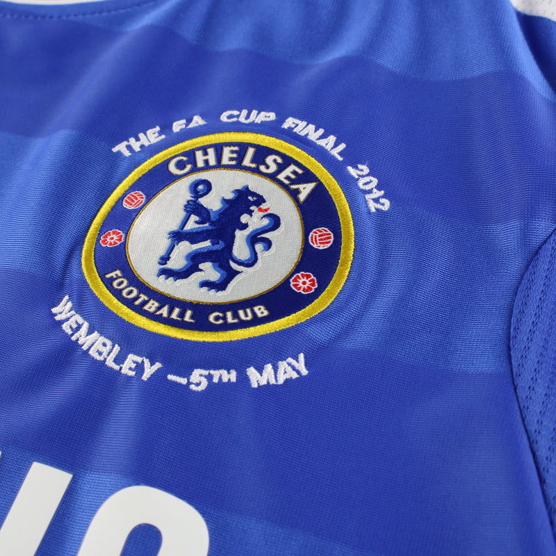 Details - Home shirt as worn when Chelsea reached the final of the 2012 FA Cup, the final was contested by Chelsea and Liverpool on 5 May 2012 at Wembley Stadium in London, England. The match ended in a 2-1 victory for Chelsea, with goals from Ramires and Didier Drogba. The win marked Chelsea's fourth FA Cup title and their first since their 2007 triumph.