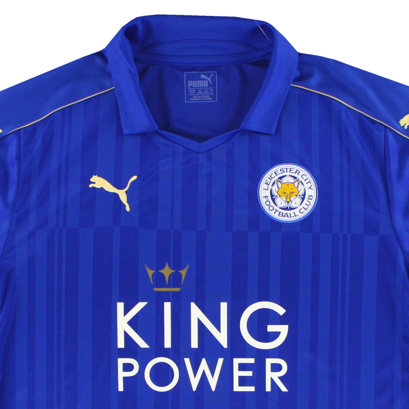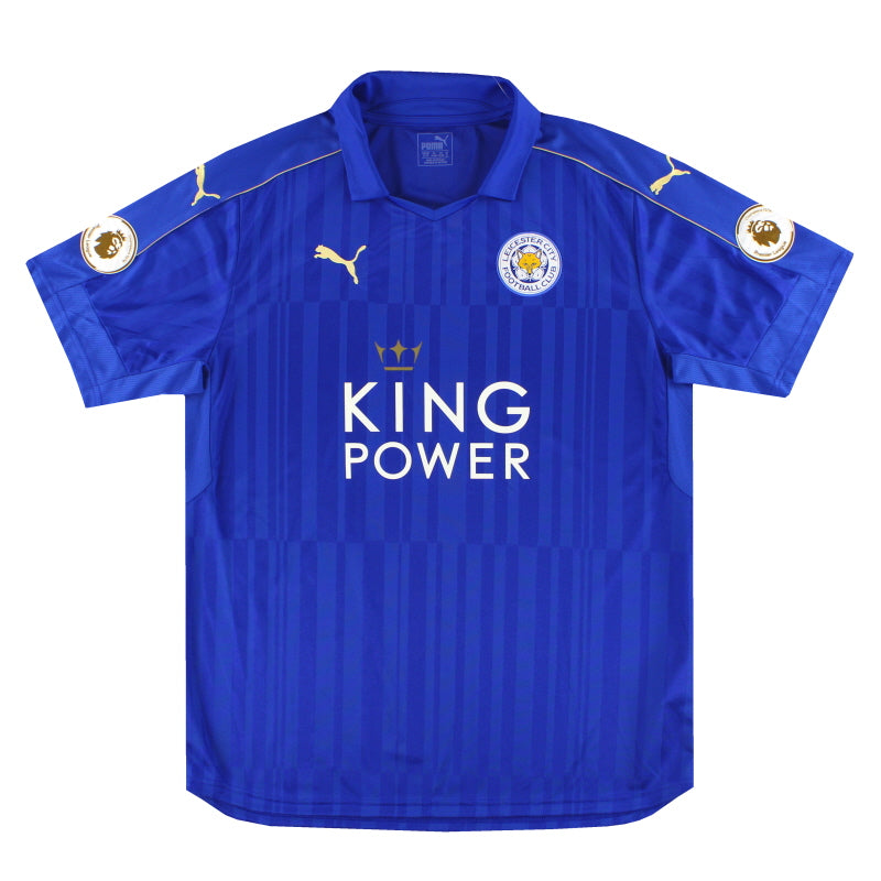 Home shirt as worn when Leicester City were looking to retain their Premier League title after an unlikely Championship crown in the previous season. However, the defending champions struggled to replicate the form shown in the previous season, after losing a key piece of their team in N'Golo Kante to Chelsea in the summer transfer window, they found themselves in a relegation battle which led to the dismissal of their manager, Claudio Ranieri, and saw Craig Shakespeare take over until the end of the season.