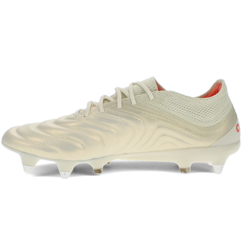 Details - These adidas premium Copa 19.1 Mens SG Football Boots in and beige and solar red colourway featured heavily during the early stages of the 2019/20 season have been crafted with a a mono-tongue construction which allows for an adaptive fit and sock-like experience, whilst the internal elastic strap works with the lacing for an enhanced lockdown. The Fusionskin technology utilises a revolution in the process of leather treatment, making it seamless and less permeable, whilst the internal foam pads and ortholite insole delivers exceptional cushioning and the X Ray K leather vamp allows you to control the ball with ease