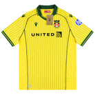 The 2025–26 Wrexham AFC away shirt by Macron combines tradition with modern flair. Featuring a bold yellow base inspired by the daffodil, Wales’s national flower, the design is accented by subtle green pinstripes that recall classic away kits of past decades. A rich green polo collar and matching sleeve trims provide contrast, lending the shirt both balance and a timeless, retro elegance.