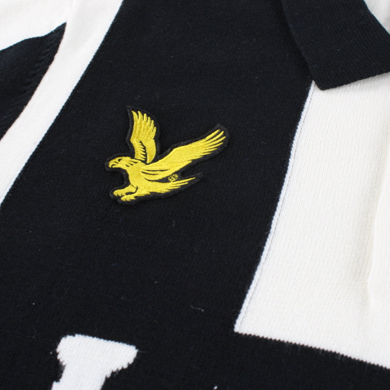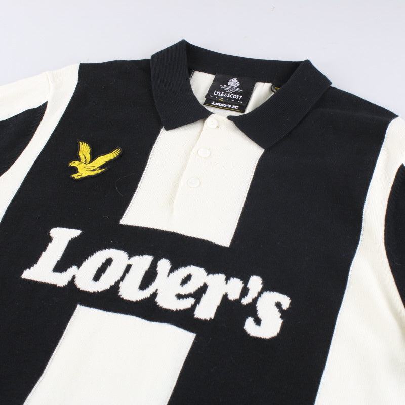 Lyle and Scott are back releasing the ‘Memories Made’ collection in the popular collaboration with Lovers FC, with the collection focusing on reimagined knitwear using some of football’s most iconic shirt designs with this vertical stripe knitted polo shirt based on Italtian based Juventus. The signature Lovers FC logo is situated on the front and signature Lyle And Scott golden eagle logo badge is stitched on the right.
