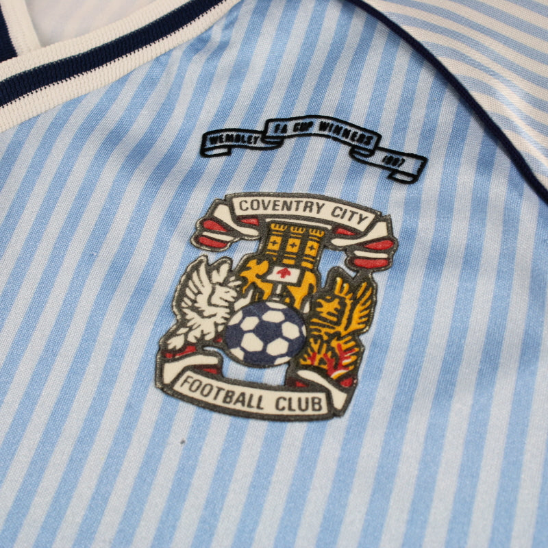 Details - Home shirt as worn when Coventry City finished 10th and 7th in the First Division in respective seasons and were knocked out in the fourth round of the FA Cup in the 1987-88 season when they were attempting to defend their title from the previous season, losing 1-0 against Watford.