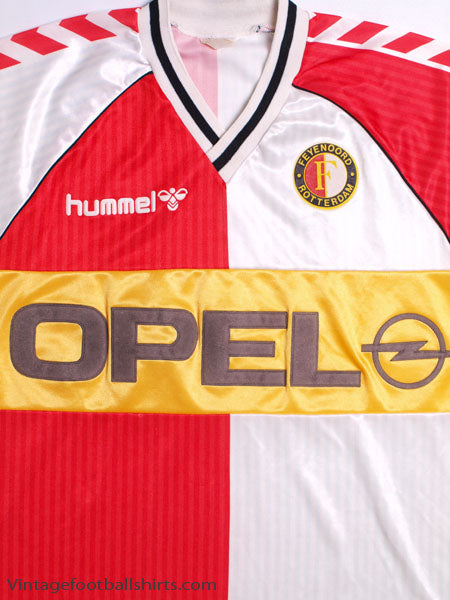Details - Home shirt as worn when Feyenoord finished 6th and 4th respectively in the Eredivisie and were knocked out in the third round of the 1987-88 UEFA Cup, losing 3-2 on aggregate against eventual winners Bayer Leverkusen.