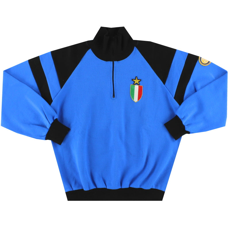 Details - 1/4 Zip as worn when Inter Milan couldn't replicate their form of the previous season, failing to defend their Serie A title after finishing 3rd in the league behind Napoli and AC Milan. New signing Jurgen Klinsmann became the top scorer for Inter Milan in his debut season at the club, scoring 15 goals in all competitions as the side could only manage to win one piece of silverware throughout the season, the Supercoppa Italiana.