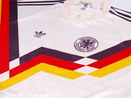Details - Classic home shirt as worn in the 1990 World Cup Final against Argentina in the Stadio Olimpico, Rome. West Germany won 1-0 thanks to a 85 minute penalty from Brehme after a foul on Rudi Voller by Roberto Sensini