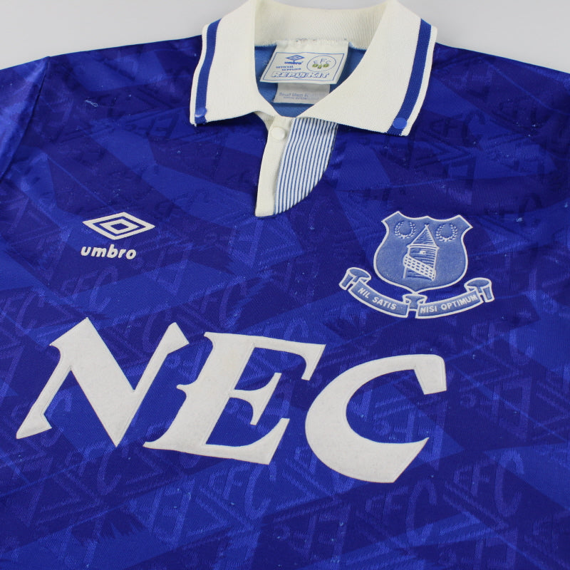 Details - Home shirt as worn when Howard Kendall returned to the club finishing 12th in the 1991-92 season, which was there lowest finish for more than a decade, the following season was the first year of the new FA Premier League with Everton finishing 13th.