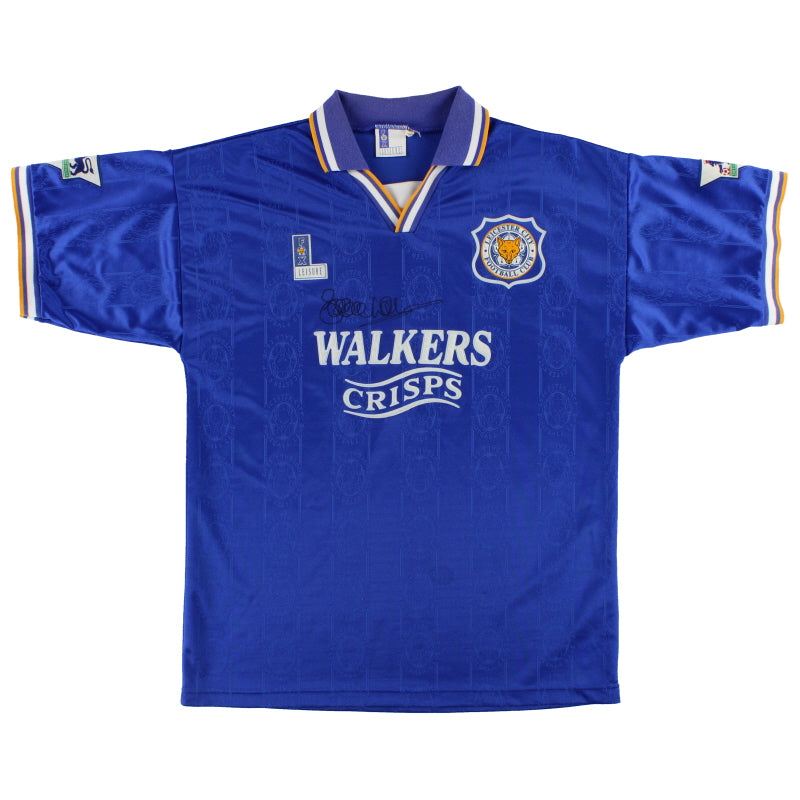 Details - Home shirt believed to have been worn by Steve Walsh during the Leicester City's 1994-95 Premier League campaign. Steve Walsh captained the side during the season as Leicester City were relegated from the Premier League after finishing 21st in the table, 19 points away from safety. Walsh signed for Leicester in 1986 and went on to make 369 league appearances for the club, scoring 53 goals, before leaving for Norwich City in 2000.