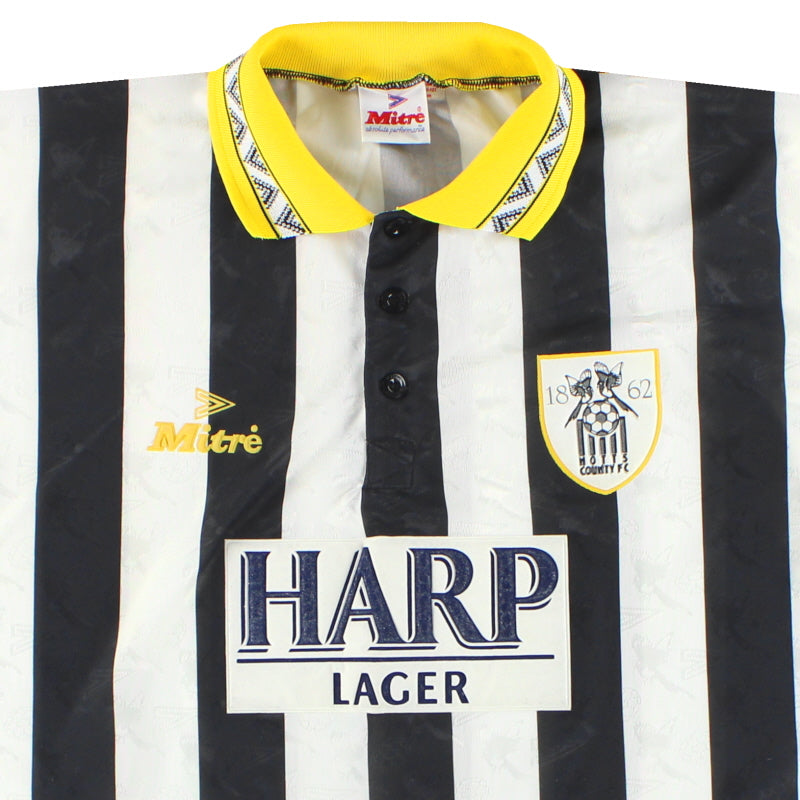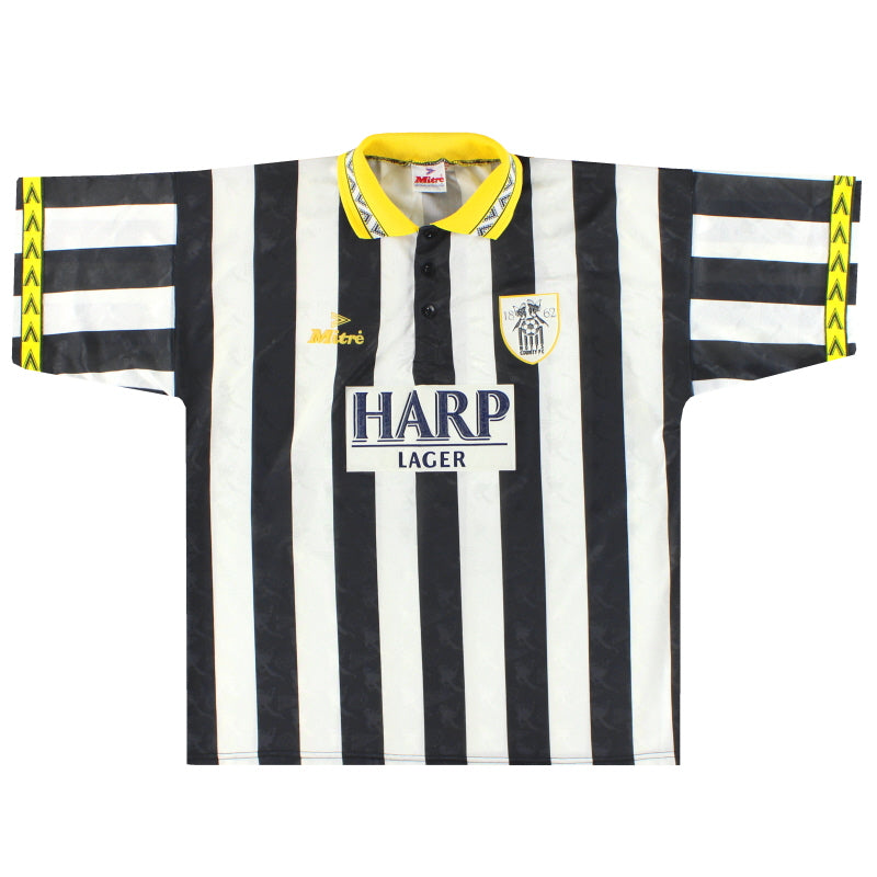 Home shirt as worn when Notts County were relegated from the First Division in the 1994-95 season, finishing bottom of the table, before finishing 4th in the Second Division in the following season.