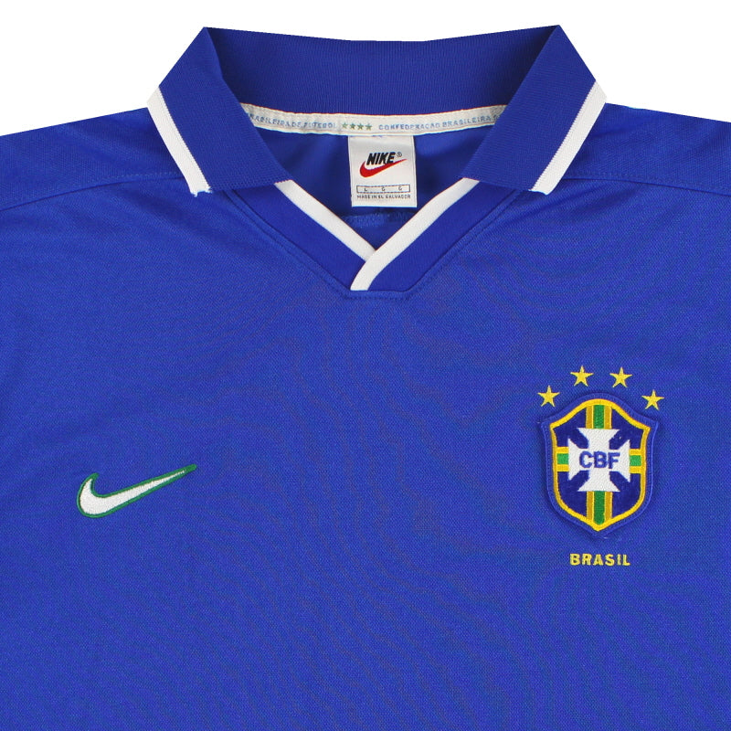 Details - Rare away shirt as worn when Brazil were competing in the 1997 FIFA Confederations Cup, winning the competition after beating Australia 6-0 in the final. Also worn at Le Tournoi when Roberto Carlos pulled off his famous banana free-kick against France.