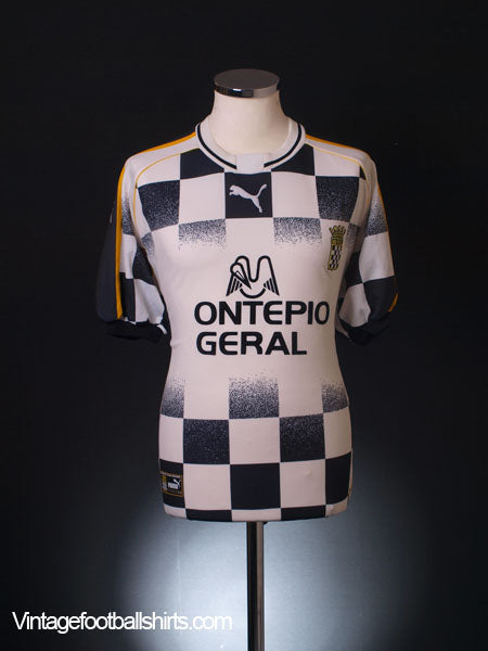Details - Home shirt as worn when Boavista finished as runners up in the Primeira Liga and were knocked out in the fifth round of the Taca de Portugal, losing 1-0 against Alverca. Also worn when Boavista were knocked out in the second group stages of the Champions League after finishing 3rd in their group behind Manchester United and Bayern Munich.