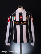 Details - Home shirt as worn when Juventus finished as champions of Serie A, finishing 7 points ahead of second placed Inter Milan, and were knocked out in the quarter finals of the Coppa Italia, losing 4-1 on aggregate against Perugia. Also worn when Juventus made it to the final of the Champions League, losing 3-2 on penalties against AC Milan after the game finished 0-0 after extra time.