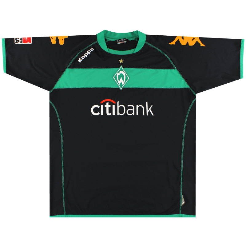 Details - Third shirt as worn when Werder Bremen finished 10th in the Bundesliga and won the DFB-Pokal, beating Bayer Leverkusen 1-0 in the final with Mesut Ozil scoring the only goal in the game. Also worn when Werder Bremen made it to the UEFA Cup final, losing 2-1 against Shakhtar Donetsk after extra time, after finishing 3rd in their Champions League group behind Panathinaikos and Inter Milan.