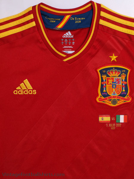 Details - 'Campeones' shirt released to celebrate Spain winning the 2012 UEFA European Championship after they beat Italy 4-0 in the final with goals from David Silva, Jordi Alba, Fernando Torres and Juan Mata, meaning they became the first country to successfully defend their European title.