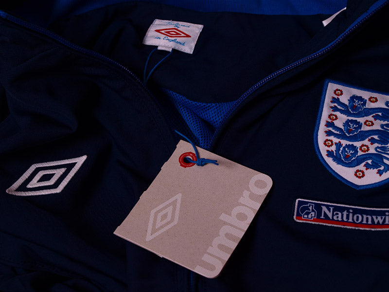 Details - Track jacket as worn when England competed in the 2010 World Cup with the squad making it out of their group as runners up behind the USA but were eliminated in the next round following a 4-1 loss to Germany which included a Frank Lampard goal not being awarded despite the ball crossing the line which would have leveled the match at 2-2, eventually leading to the introduction of goal line technology in 2012.