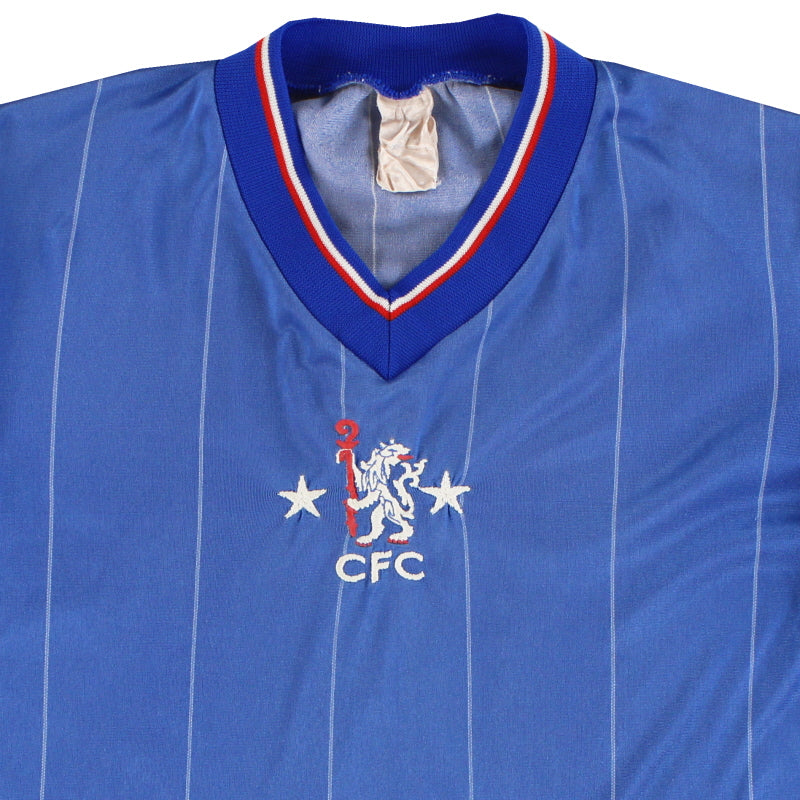 Extremely rare vintage home shirt as worn in a turbulent time for Chelsea, when they hit financial difficulties and the club was acquired by Ken Bates for a nominal sum of £1. On the pitch Chelsea finished 12th and 18th respectively in the Second Division and made it to the quarter finals of the 1981-81 FA Cup, losing 3-2 against Tottenham Hotspur.