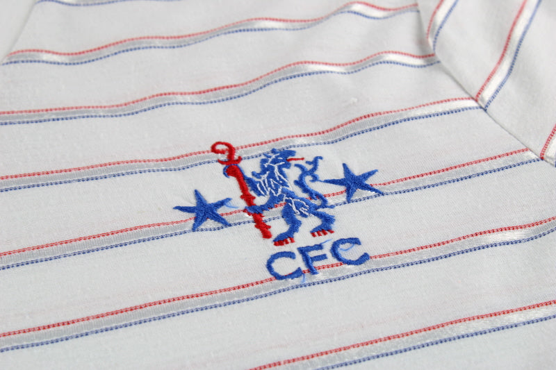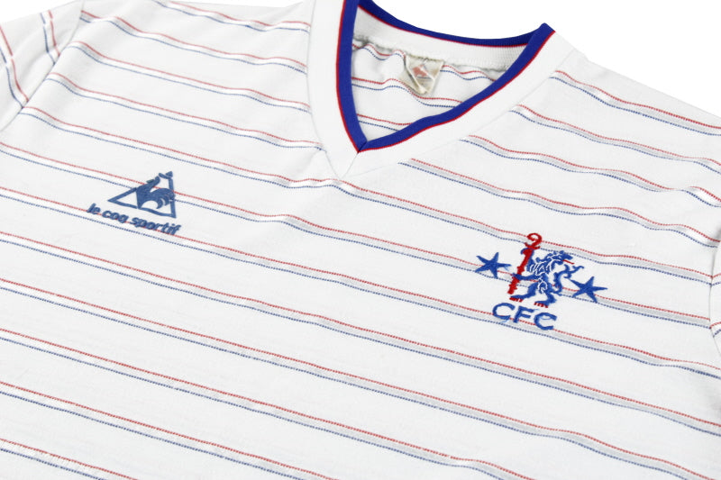 Details - Away shirt as worn when Chelsea finished 6th in the First Division in back to back seasons and were knocked out in the semi finals of the 1984-85 League Cup, losing 5-2 on aggregate against Sunderland.