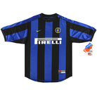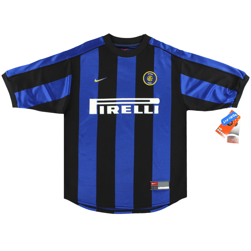 Details - Home shirt as worn when Inter Milan finished 4th in Serie A and made it to the final of the Coppa Italia, losing 2-1 on aggregate against Lazio. Ronaldo joined Inter Milan in the summer 1997 for a world record transfer fee, scoring 59 goals in his 99 appearances for the club before leaving to join Real Madrid in 2002.