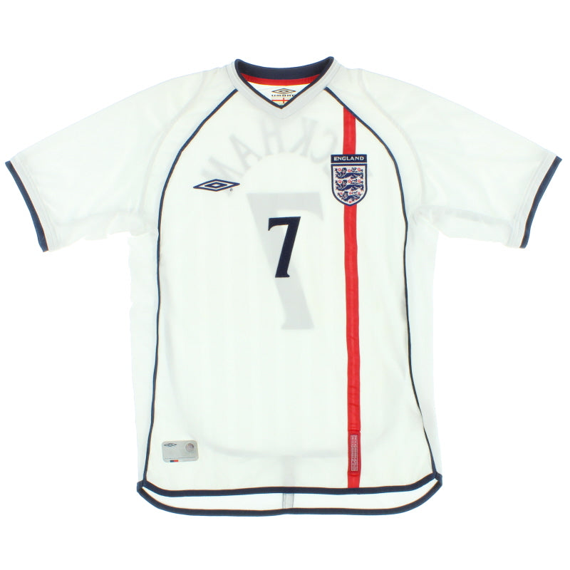 Details - Classic home shirt as worn when Beckham sent England into the 2002 World Cup Finals with a awesome free kick in the 93rd minute against Greece in the final qualifying game. During the competition they made it to the quarter finals, losing 2-1 against the eventual winners Brazil.