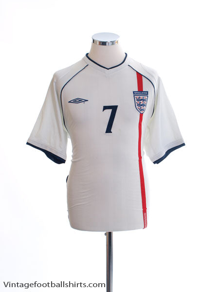 Details - Classic home shirt as worn when Beckham sent England into the 2002 World Cup Finals with a awesome free kick in the 93rd minute against Greece in the final qualifying game. During the competition they made it to the quarter finals, losing 2-1 against the eventual winners Brazil.