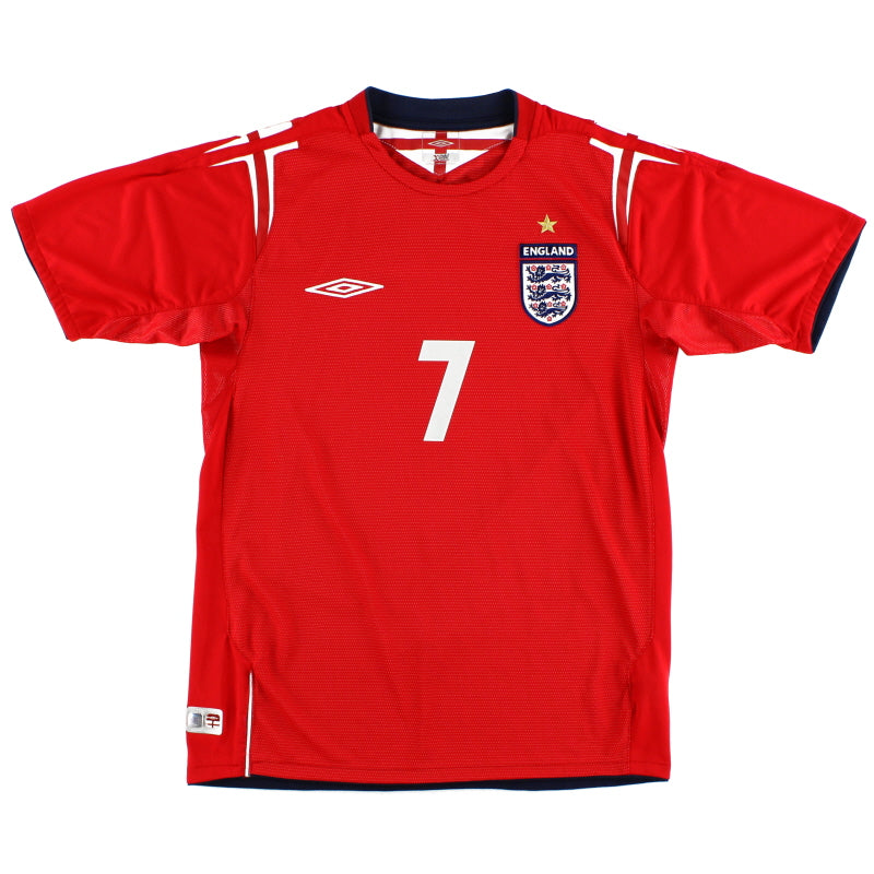 Details - Away shirt as worn when England made it to the quarter finals of the 2004 European Championship against Portugal, the game against the hosts finished 2-2 after extra time, with England once again, losing the penalty shoot-out, 6-5 with David Beckham and Darius Vassell failing to convert from the spot.