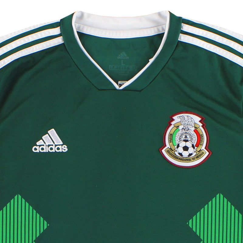 Home shirt as worn when Mexico were competing in the 2018 World Cup, being knocked out in the last 16 of the competition after losing 2-0 against Brazil.