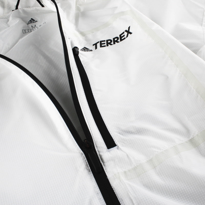 adidas Terrex windweave lightweight jacket has a water repellent material, made with windweave technology for maximum breathability and comfort with out on a run in the elements. Made with storage in mind, very easy to pack and very lightweight.