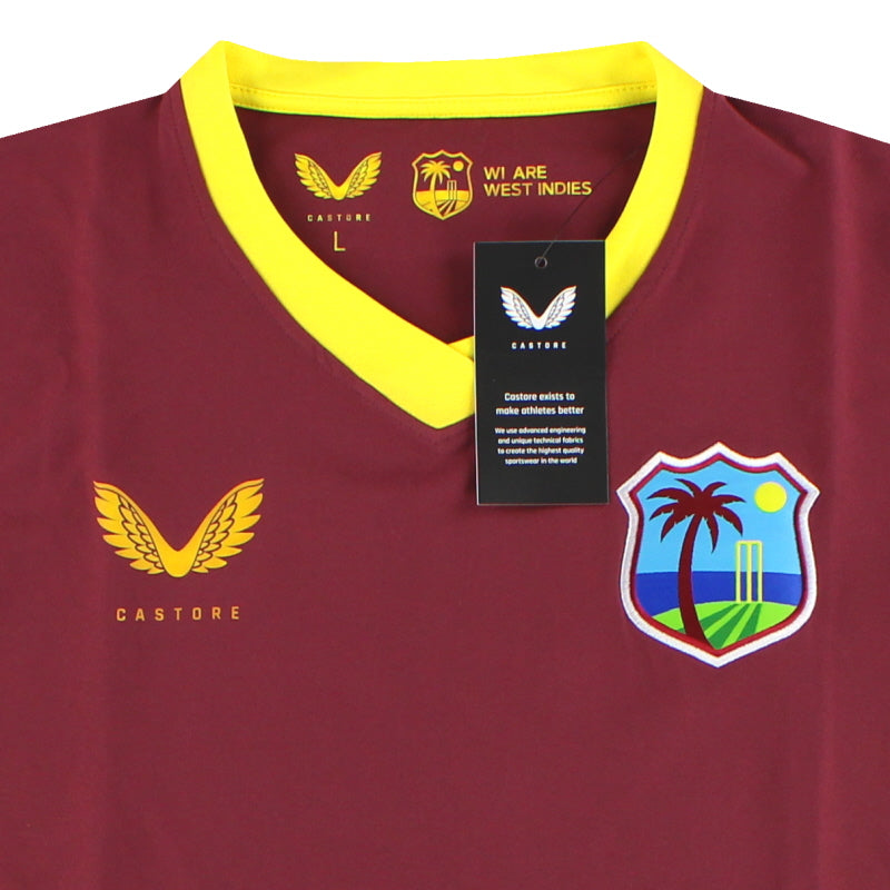West Indies long sleeve sweatshirt with V-neck collar, Castore have used their lightweight performance fabric with mesh holes to the sides to keep you cool all day long. Finished off with their signature crest