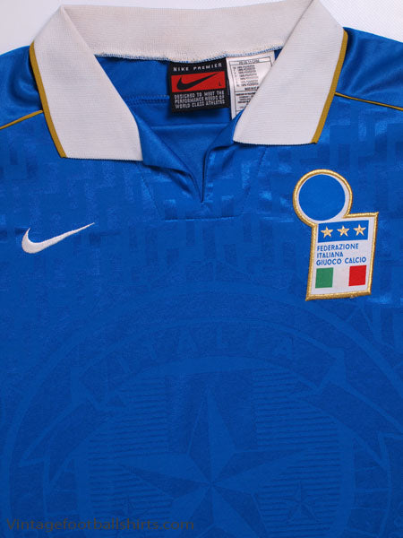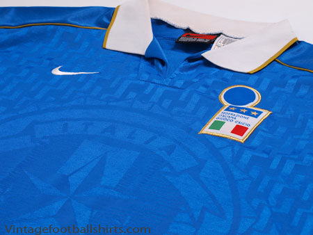 Details - Home shirt as worn when Italy were attempting to qulaify for the 1996 European Championship with Italy successfully qualifying for the competition after finishing as runners up in their qualficiation group, qualifying as one of the six best runners up.