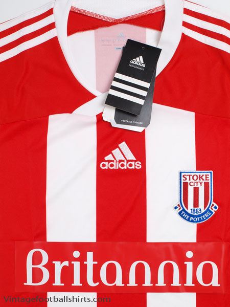Details- Home shirt as worn when Stoke finished 14th in the Premier League and made it to the round of 32 in the Europa League, losing 2-0 on aggregate against Valencia. Also worn when Stoke made it to the quarter finals of the FA Cup, losing 2-1 against Liverpool with Stewart Downing scoring the winning goal.