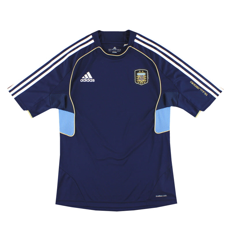 Training shirt as worn when Argentina were competing in the 2011 Copa America, being knocked out in the quarter finals of the competition, losing 5-4 on penalties against Uruguay after the tie finished 1-1 after extra time.