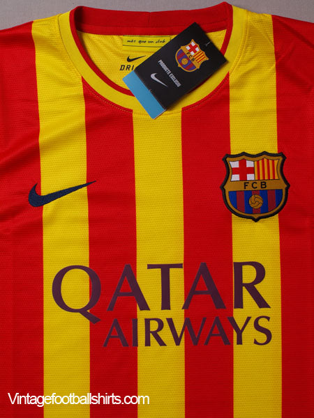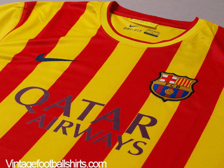 Details - Away shirt as worn when the side failed to defend their La Liga title, finishing runners up to Atletico Madrid, but managed home and away La Liga victories in the El Classico and made it to the Copa del Rey final, losing 2-1 against Real Madrid with Gareth Bale scoring an 85th minute winner