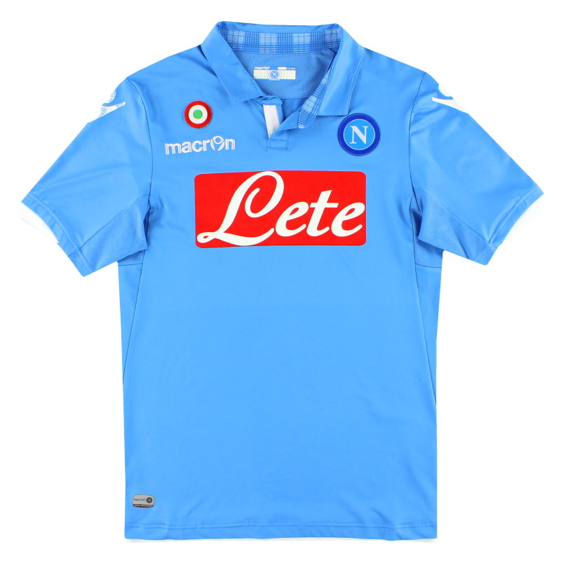 Home shirt as worn when Napoli finished 5th in Serie A and were knocked out in the semi finals of the Coppa Italia, losing 2-1 on aggregate against Lazio. Also worn when Napoli were knocked out in the semi finals of the Europa League, losing 2-1 on aggregate against Dnipro.