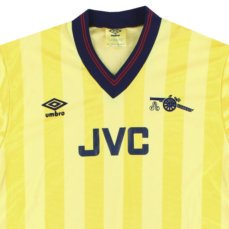 Arsenal were founded as Dial Square FC in 1886 and have Nottingham Forest to thank for their first ever kit. When several ex-Forest players joined the side they brought with them their old red football jerseys and it was decided that the most economical way to kit out the team was in the same colour. The jersey was dark red (or redcurrant as it was renamed when Nike memorably resurrected the design in 2005 to commemorate the club’s last season at Highbury) and was paired with white shorts and dark red or navy socks. The iconic Arsenal kit of red football shirts and white sleeves first appeared in 1933 when then manager Herbert Chapman devised the design in an attempt to create a more distinctive strip for his team. Legend has it that inspiration came from an individual Chapman spotted at Highbury who was wearing a red tank-top over a plain white shirt. The highly individual look is much loved by Arsenal fans who were delighted when Nike launched a classic interpretation of the jersey in 2010 after a few years of ‘tampering’. Gooners are equally as passionate about their preferred away kit colours and almost unanimously opt for yellow and blue - a colour scheme that gained popularity in the 1970s. Prior to then, white and occasionally navy football shirts were the away colours of choice. Navy has actually played an important part in Arsenal’s colour identity over the years and has featured in many home and away kits. Arsenal embraced shirt sponsorship in 1981 when they struck a deal with Japanese electronics company JVC. The relationship was to last until 1999 and since then the company have only had three sponsorship deals: Sega/Dreamcast, O2 and Emirates Airlines, creating one of the smallest sponsor role calls in English football