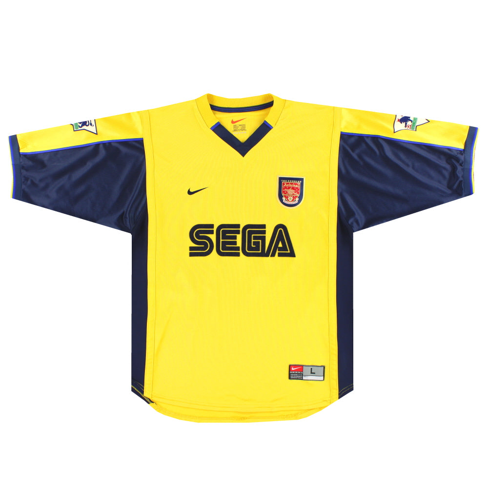 Arsenal were founded as Dial Square FC in 1886 and have Nottingham Forest to thank for their first ever kit. When several ex-Forest players joined the side they brought with them their old red football jerseys and it was decided that the most economical way to kit out the team was in the same colour. The jersey was dark red (or redcurrant as it was renamed when Nike memorably resurrected the design in 2005 to commemorate the club’s last season at Highbury) and was paired with white shorts and dark red or navy socks. The iconic Arsenal kit of red football shirts and white sleeves first appeared in 1933 when then manager Herbert Chapman devised the design in an attempt to create a more distinctive strip for his team. Legend has it that inspiration came from an individual Chapman spotted at Highbury who was wearing a red tank-top over a plain white shirt. The highly individual look is much loved by Arsenal fans who were delighted when Nike launched a classic interpretation of the jersey in 2010 after a few years of ‘tampering’. Gooners are equally as passionate about their preferred away kit colours and almost unanimously opt for yellow and blue - a colour scheme that gained popularity in the 1970s. Prior to then, white and occasionally navy football shirts were the away colours of choice. Navy has actually played an important part in Arsenal’s colour identity over the years and has featured in many home and away kits. Arsenal embraced shirt sponsorship in 1981 when they struck a deal with Japanese electronics company JVC. The relationship was to last until 1999 and since then the company have only had three sponsorship deals: Sega/Dreamcast, O2 and Emirates Airlines, creating one of the smallest sponsor role calls in English football