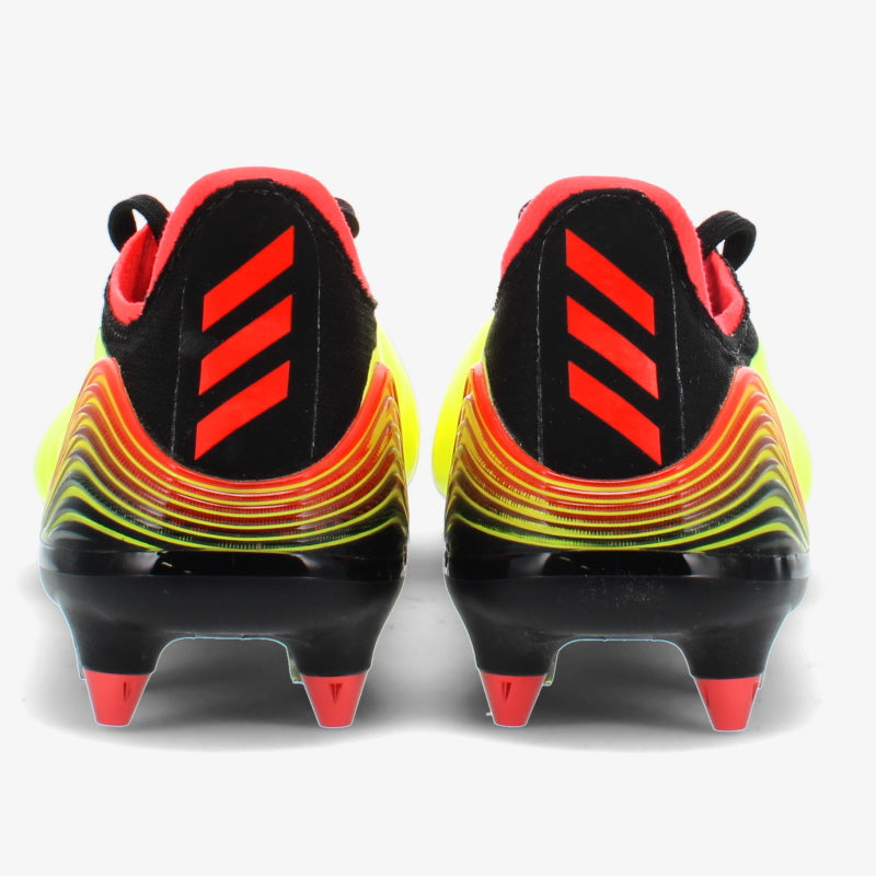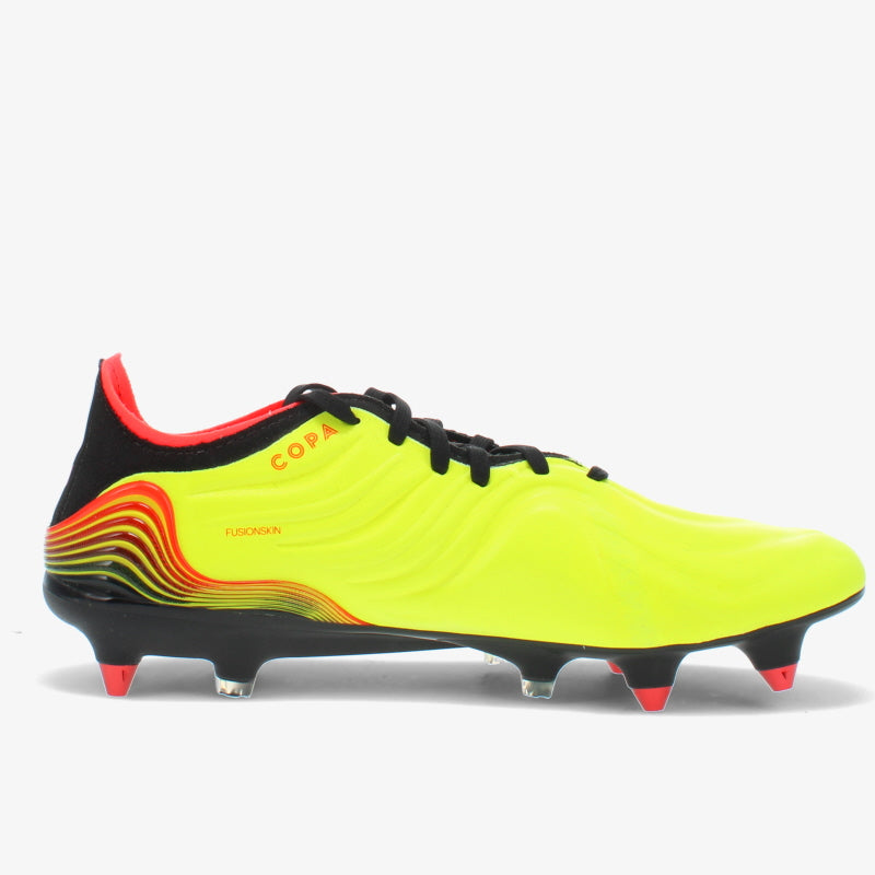 Details - These adidas premium Copa .1 lets you feel the game and elevate your play wearing adidas Copa Sense .1 SG football boots in Team Solar Yellow/Solar Red/Core Black, featuring an all-new design with foam pods at the heel, instep, and outstep for a hyperanatomical fit and the purest first touch. Made with premium leather and Fusionskin treatment for a seamless construction that reduces water intake.