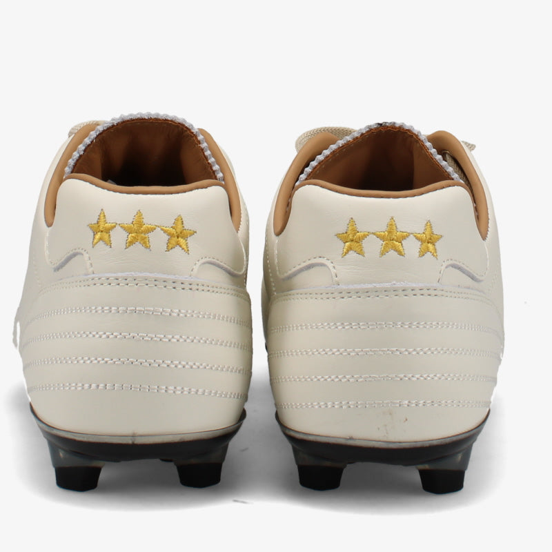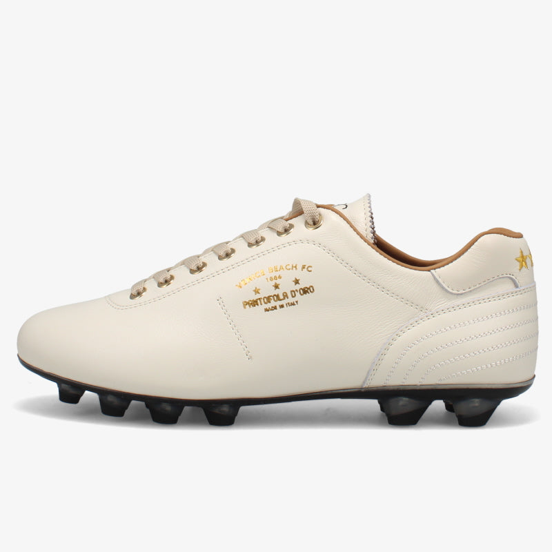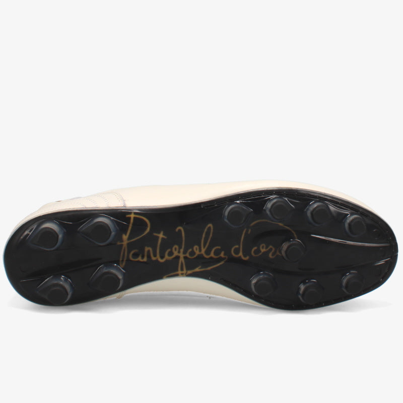 Details - The Pantofola d’Oro Lazzarini Premio FG is a classic Italian football boot, known for its elegant design and exceptional craftsmanship. It features conical molded studs for firm ground traction and a soft, flexible upper made from full-grain leather and synthetic materials, which molds to the foot for a custom fit. The full-grain leather vamp enhances comfort and ball control, while a synthetic collar lining ensures shape retention. Lightweight and secure, thanks to metal eyelets, this boot blends traditional style with modern performance.