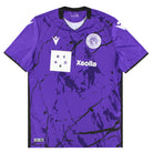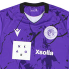 Featuring a deep purple base accented with subtle black, the shirt showcases a striking abstract tonal pattern across the front that adds dimension and a contemporary edge.
