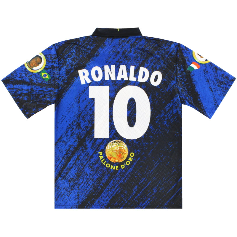 Details - Graphic tee released for the Phenomenon that went on to revolutionise the world of football, combining pace and power with technique that had never been seen before. He wore the Nerazzurri shirt for five seasons and, although he suffered various injuries during his time at the Club, he was an inspirational figure .UEFA Cup Final vs Lazio, his goal in that game, one of the 59 he scored in 99 Inter appearances, remains memorable. And in 1997 Ronaldo got his hands on the Ballon d’Or trophy, at the young age of 21, became the youngest ever winner of the coveted award and the record is still yet to be beaten.