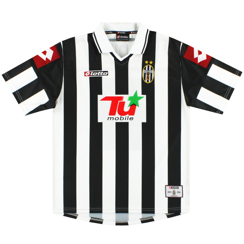 Details - European home shirt as worn when Juventus finished as champions of Serie A, finishing 1 point ahead of second placed Roma, and made it to the final of the Coppa Italia, losing on away goals against Parma after the tie finished 2-2 on aggregate. Also worn when Juventus were knocked out in the second group stage of the Champions League, finishing bottom of their group behind Bayer Leverkusen, Deportivo La Coruna and Arsenal.