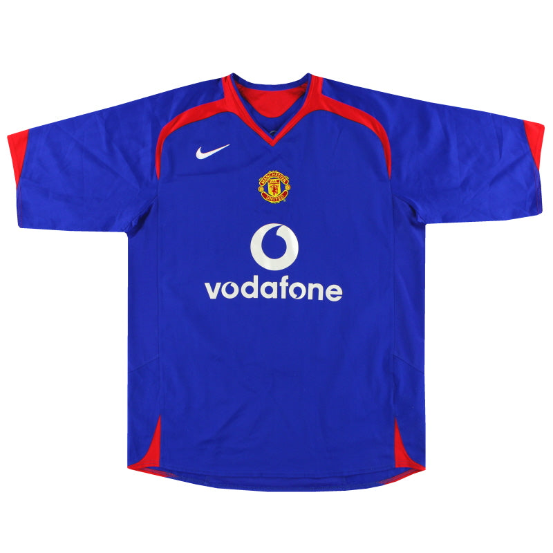 Away shirt as worn when Manchester United finished as runners up in the Premier League, 8 points behind champions Chelsea, and also won the League Cup, beating Wigan Athletic 4-0 in the final thanks to goals from Wayne Rooney, Louis Saha and Cristiano Ronaldo.