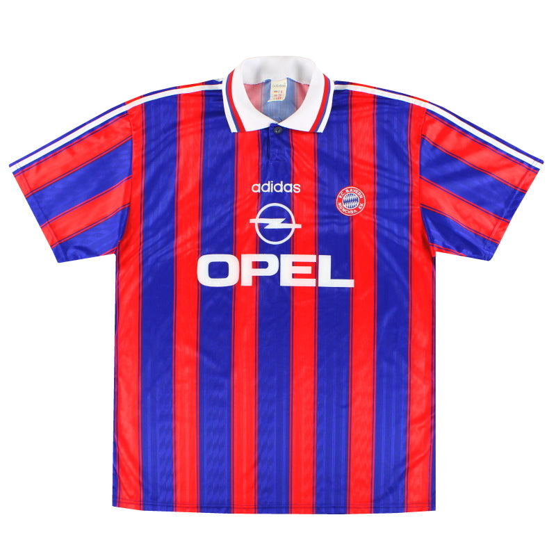 Home Shirt worn when Franz Beckenbauer briefly returned at the end of the 1995-96 season as caretaker coach and led his team to victory in the UEFA Cup 1995-96, beating Bordeaux in the final, for the 1996-97 season Giovanni Trapattoni returned to win the championship. But in the following season Bayern lost the title to the just promoted FC Kaiserslautern and Trapattoni had to take his leave for the second time