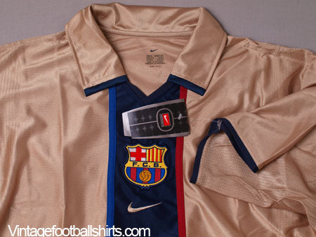 Details - Gold away shirt as worn in a game against Liverpool at Anfield when Barca gave them a football lesson, making a 30 odd pass move, finishing with a goal from Mark Overmars