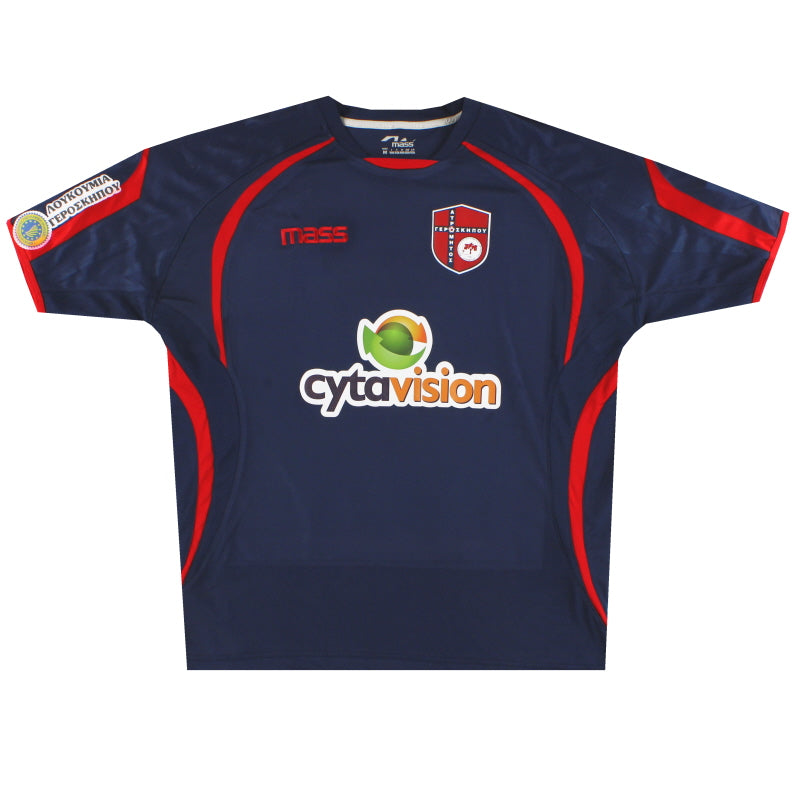 Details - Away shirt believed to have been worn or issued to #3. As worn when Atromitos Yeroskipou finished 6th in the Cypriot Second Division, finishing 2 points off qualification for the promotion group, and were knocked out in the second round of the Cypriot Cup, losing 8-2 on aggregate against eventual winners Omonia, before the club was eventually dissolved in 2013 after financial problems.