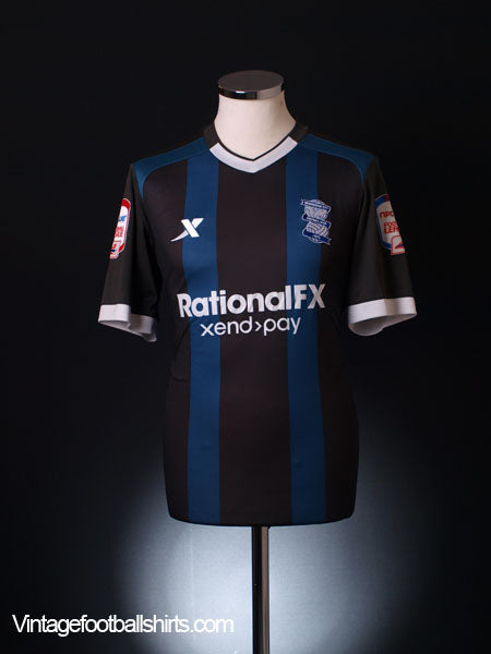Details - Away shirt as worn when Birmingham finished 4th in the Championship, failing to gain promotion to the Premier League after losing 3-2 on aggregate against Blackpool in the play off semi finals. Also worn when Birmingham were knocked out in the fifth round of the FA Cup, losing 2-0 against Chelsea in a replay, and were knocked out in the group stages of the Europa League, finishing 3rd in their group behind Club Brugge and Braga.