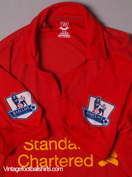 Details - Home shirt as worn when the club replaced club legend Kenny Dalglish with Brendan Rodgers who in his first season as Liverpool manager couldn't improve on their Premier League season in the previous season, finishing 7th. The team also struggled in cup competition, being knocked out in the fourth round of both the FA and League Cup and were knocked out in the last 32 of the Europa League.