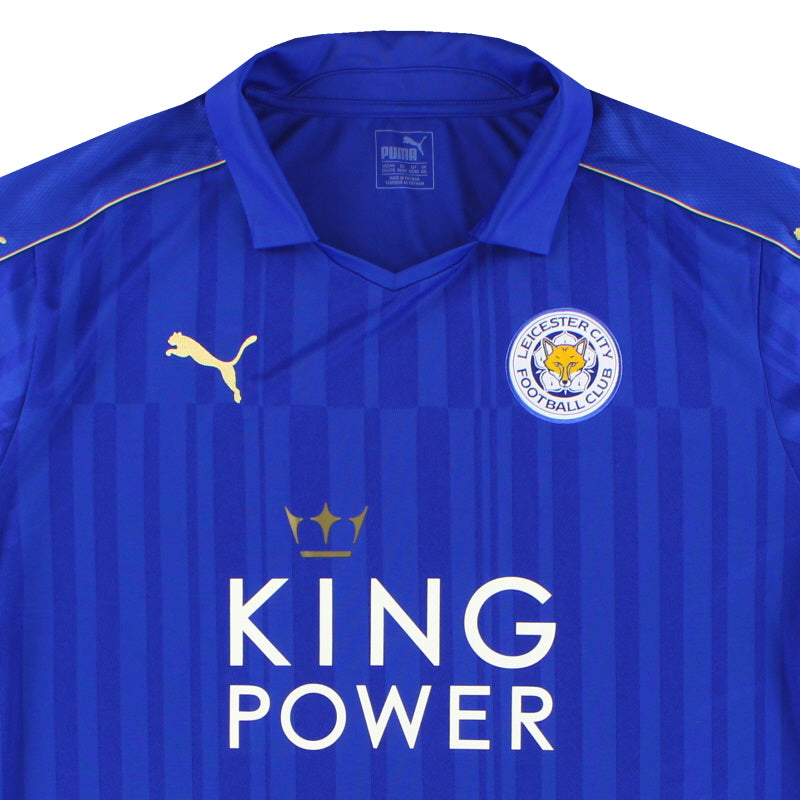 Home shirt as worn when Leicester City were looking to retain their Premier League title after an unlikely Championship crown in the previous season. However, the defending champions struggled to replicate the form shown in the previous season, after losing a key piece of their team in N'Golo Kante to Chelsea in the summer transfer window, they found themselves in a relegation battle which led to the dismissal of their manager, Claudio Ranieri, and saw Craig Shakespeare take over until the end of the season.