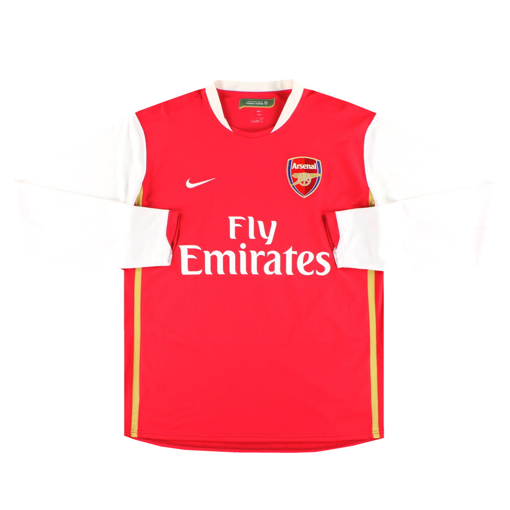 Arsenal were founded as Dial Square FC in 1886 and have Nottingham Forest to thank for their first ever kit. When several ex-Forest players joined the side they brought with them their old red football jerseys and it was decided that the most economical way to kit out the team was in the same colour. The jersey was dark red (or redcurrant as it was renamed when Nike memorably resurrected the design in 2005 to commemorate the club’s last season at Highbury) and was paired with white shorts and dark red or navy socks. The iconic Arsenal kit of red football shirts and white sleeves first appeared in 1933 when then manager Herbert Chapman devised the design in an attempt to create a more distinctive strip for his team. Legend has it that inspiration came from an individual Chapman spotted at Highbury who was wearing a red tank-top over a plain white shirt. The highly individual look is much loved by Arsenal fans who were delighted when Nike launched a classic interpretation of the jersey in 2010 after a few years of ‘tampering’. Gooners are equally as passionate about their preferred away kit colours and almost unanimously opt for yellow and blue - a colour scheme that gained popularity in the 1970s. Prior to then, white and occasionally navy football shirts were the away colours of choice. Navy has actually played an important part in Arsenal’s colour identity over the years and has featured in many home and away kits. Arsenal embraced shirt sponsorship in 1981 when they struck a deal with Japanese electronics company JVC. The relationship was to last until 1999 and since then the company have only had three sponsorship deals: Sega/Dreamcast, O2 and Emirates Airlines, creating one of the smallest sponsor role calls in English football